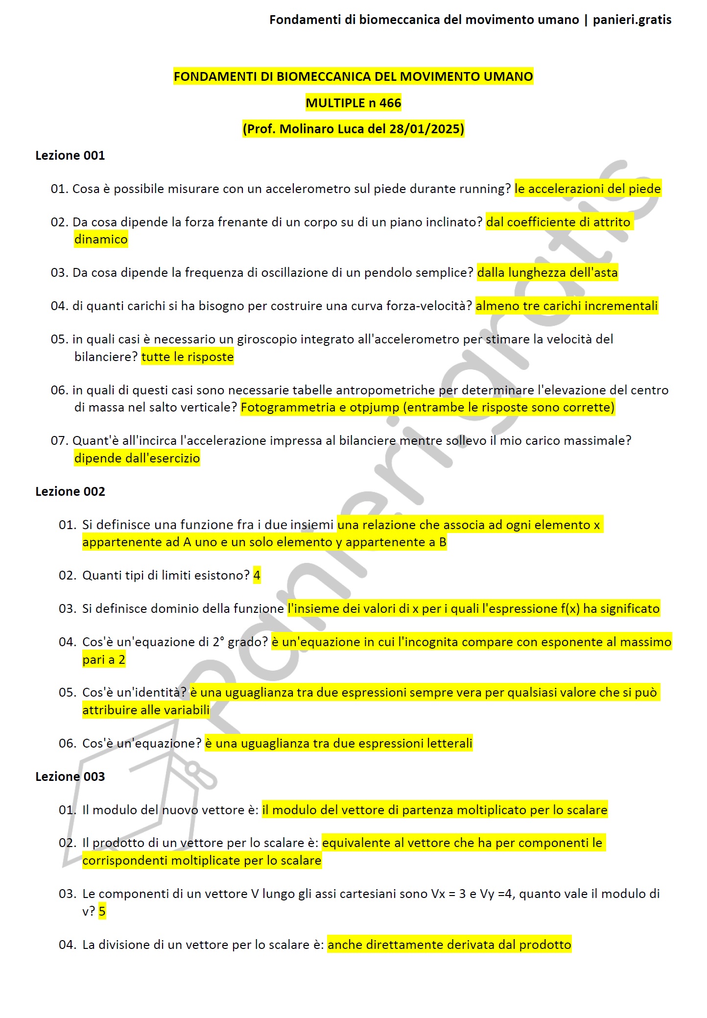 Paniere di Fondamenti di biomeccanica del movimento umano - Multiple - in ordine di lezione per il CdS in Scienze dell'attività motorie e sportive, del Prof. Molinaro Luca del 28/01/2025 - eCampusDescrizione
