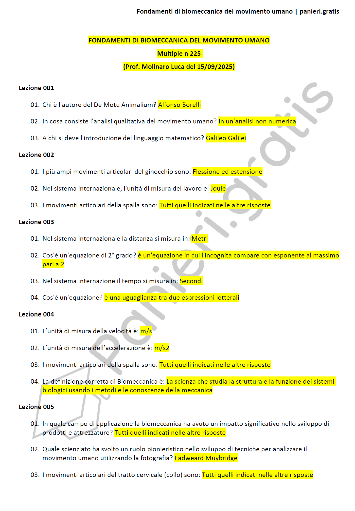Paniere di Fondamenti di biomeccanica del movimento umano - MULTIPLE - in ordine di lezione per il CdS in Scienze delle attività motorie e sportive, Prof. Molinaro Luca del 15/09/2025Informazioni Aggiuntive