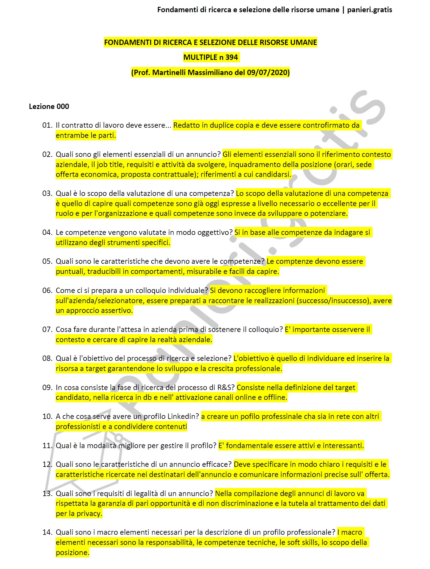Paniere di Fondamenti di ricerca e selezione delle risorse umane - MULTIPLE - in ordine di lezione per il CdS in Economia, Prof. Martinelli Massimiliano del 09/07/2020Informazioni Aggiuntive