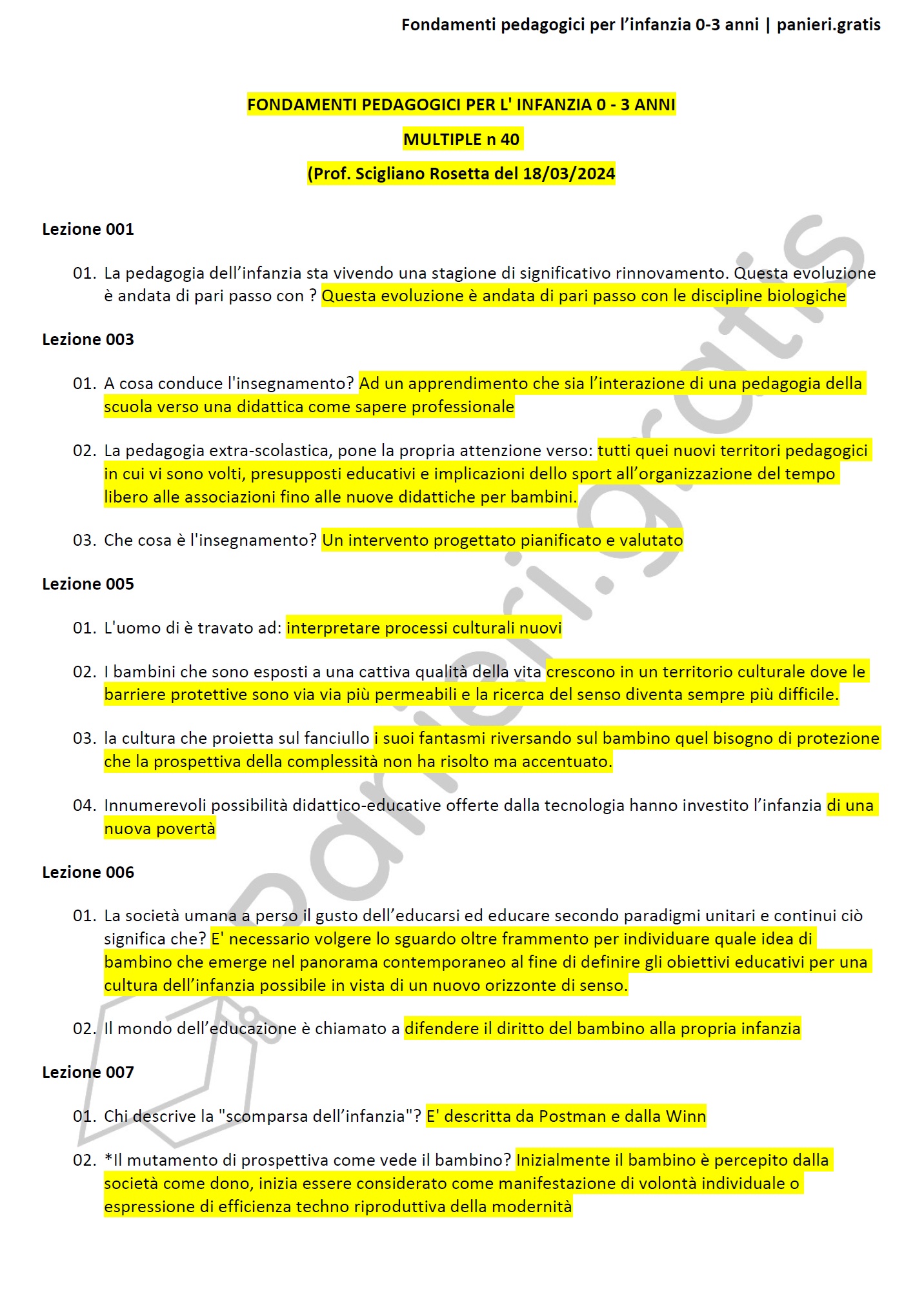 Paniere di Fondamenti pedagogici per l’infanzia 0-3 anni - Multiple - in ordine di lezione per il CdS in Scienze dell'educazione e della formazione, del Prof. Scigliano Rosetta del 18/03/2024 - eCampusInformazioni Aggiuntive