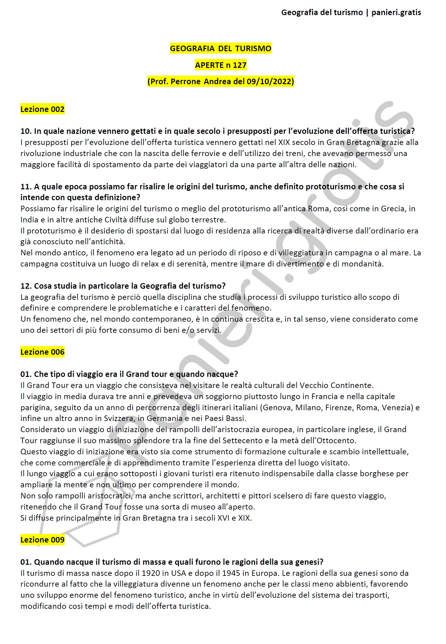 Paniere di Geografia del turismo - APERTE - in ordine di lezione per il CdS in Scienze del turismo per il management e i beni culturali, Prof. Perrone Andrea del 09/10/2022Informazioni Aggiuntive