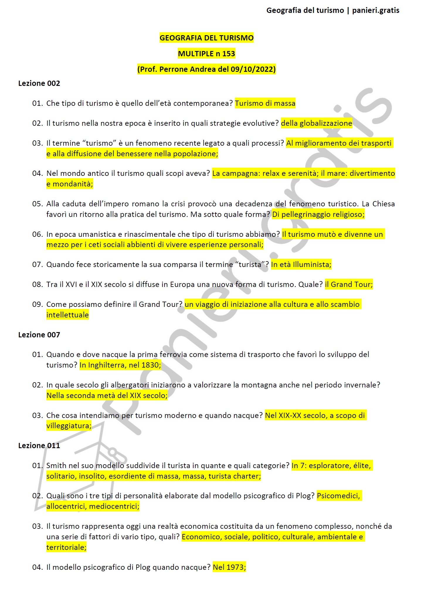 Paniere di Geografia del turismo - MULTIPLE - in ordine di lezione per il CdS in Scienze del turismo per il management e i beni culturali, Prof. Perrone Andrea del 09/10/2022Informazioni Aggiuntive