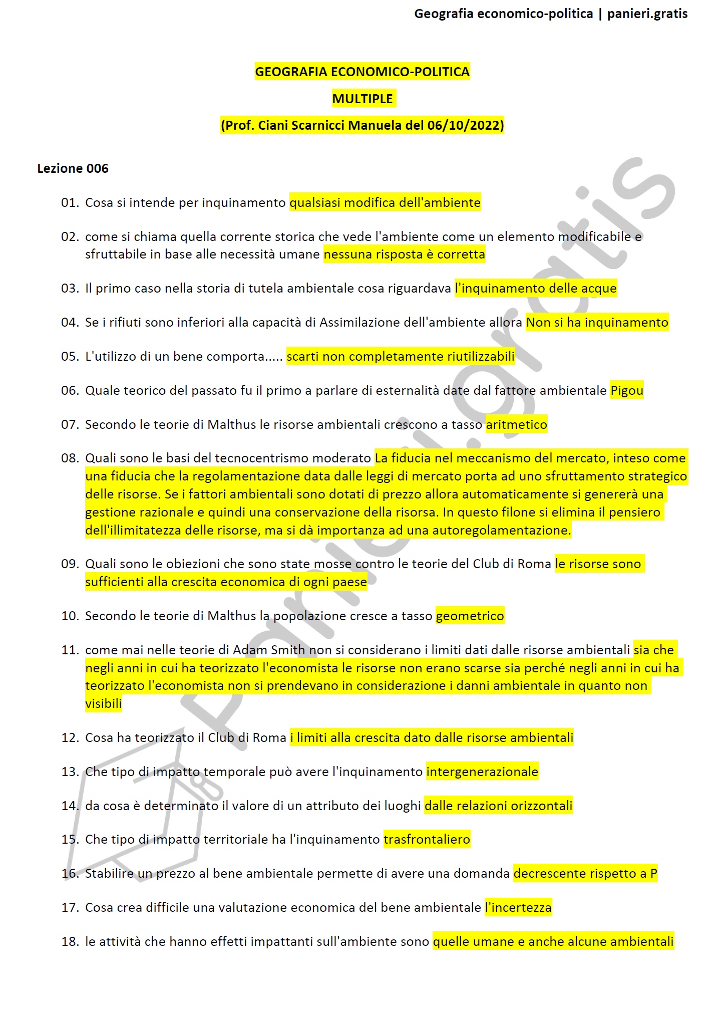 Paniere di Geografia economico-politica - MULTIPLE - per il CdS in Scienze fisiche e naturali e per Master, Prof. Ciani Scarnicci Manuela del 06/10/2022Informazioni Aggiuntive