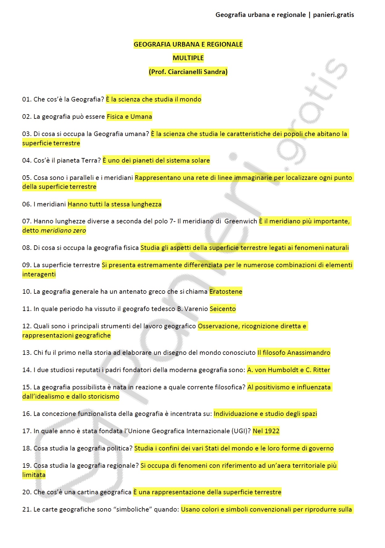 Paniere di Geografia urbana e regionale - MULTIPLE - in ordine di lezione, Prof. Ciarcianelli SandraInformazioni Aggiuntive