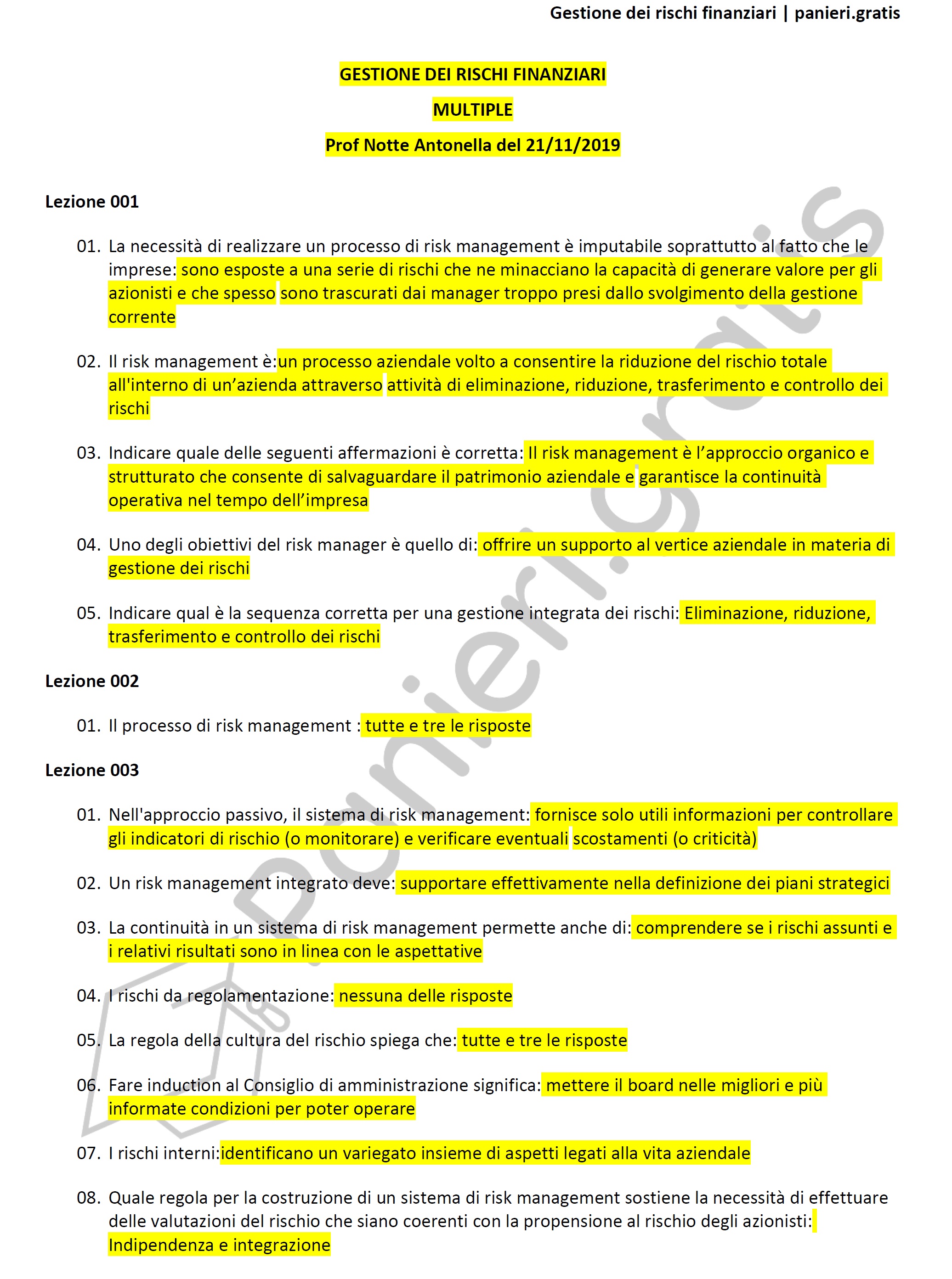Paniere di Gestione dei rischi finanziari - MULTIPLE - in ordine di lezione per il CdS in Economia, Prof Notte Antonella del 21/11/2019Informazioni Aggiuntive