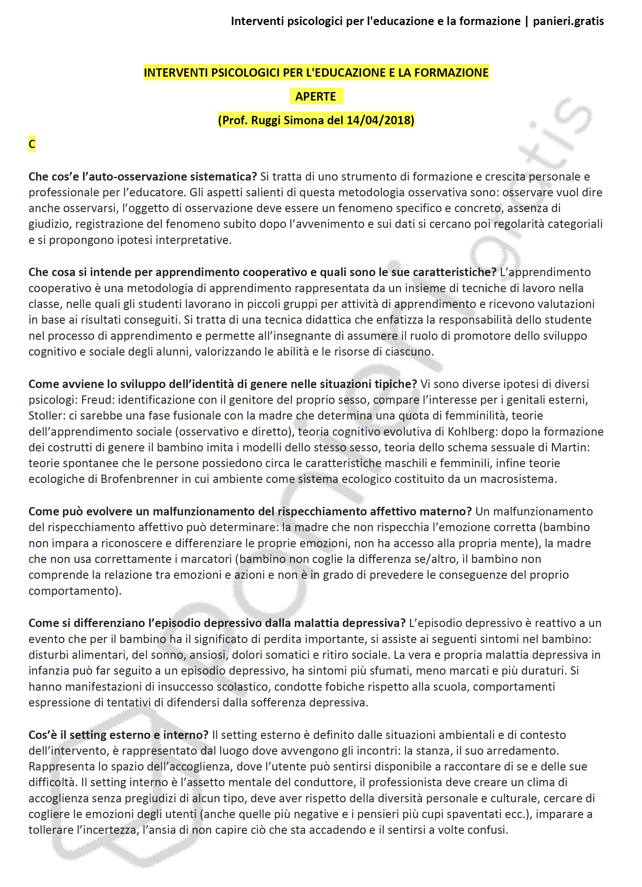 Paniere di Interventi psicologici per l'educazione e la formazione - APERTE - in ordine alfabetico per il CdS in SCIENZE DELL'EDUCAZIONE E DELLA FORMAZIONE, Prof. Ruggi Simona del 14/04/2018Informazioni Aggiuntive