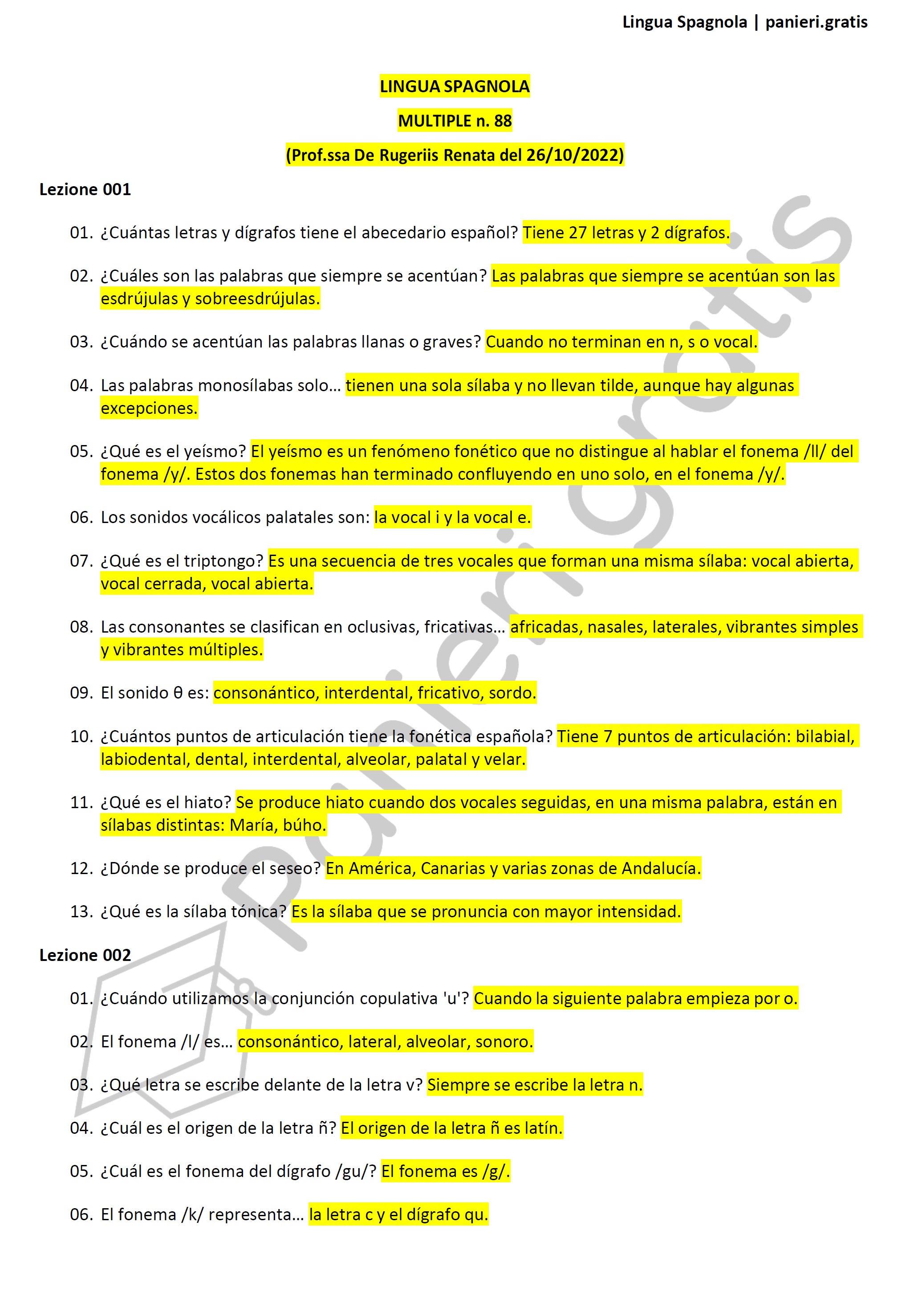 Paniere di Lingua spagnola - MULTIPLE - in ordine di lezioni per il CdS in Scienze del turismo per il management e i beni culturali eCampus, Prof.ssa De Rugeriis Renata del 26/10/2022Informazioni Aggiuntive