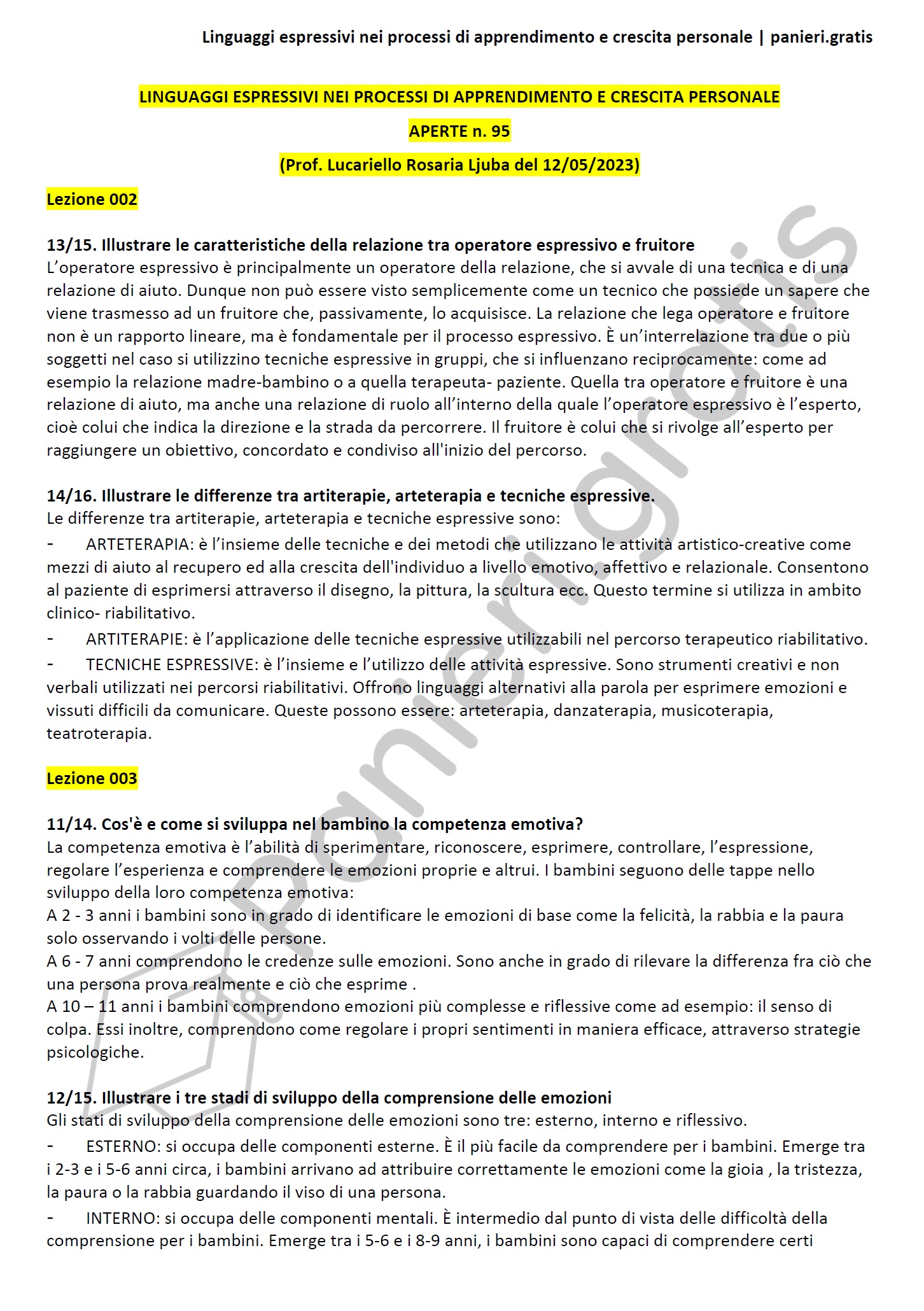 Paniere di linguaggi espressivi nei processi di apprendimento e crescita personale - APERTE - in ordine di lezione per il CdS in SCIENZE DELL'EDUCAZIONE E DELLA FORMAZIONE, Prof. Lucariello Rosaria Ljuba del 12/05/2023Descrizione