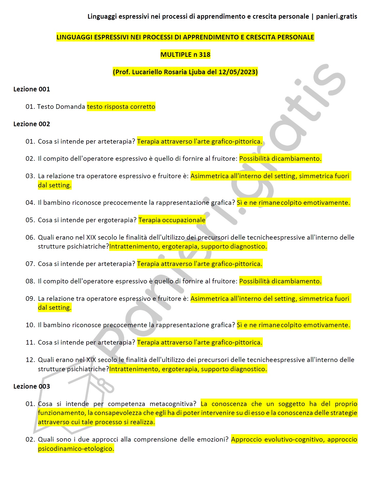 Paniere di linguaggi espressivi nei processi di apprendimento e crescita personale - MULTIPLE - in ordine di lezione per il CdS in SCIENZE DELL'EDUCAZIONE E DELLA FORMAZIONE, Prof. Lucariello Rosaria Ljuba del 12/05/2023Informazioni Aggiuntive