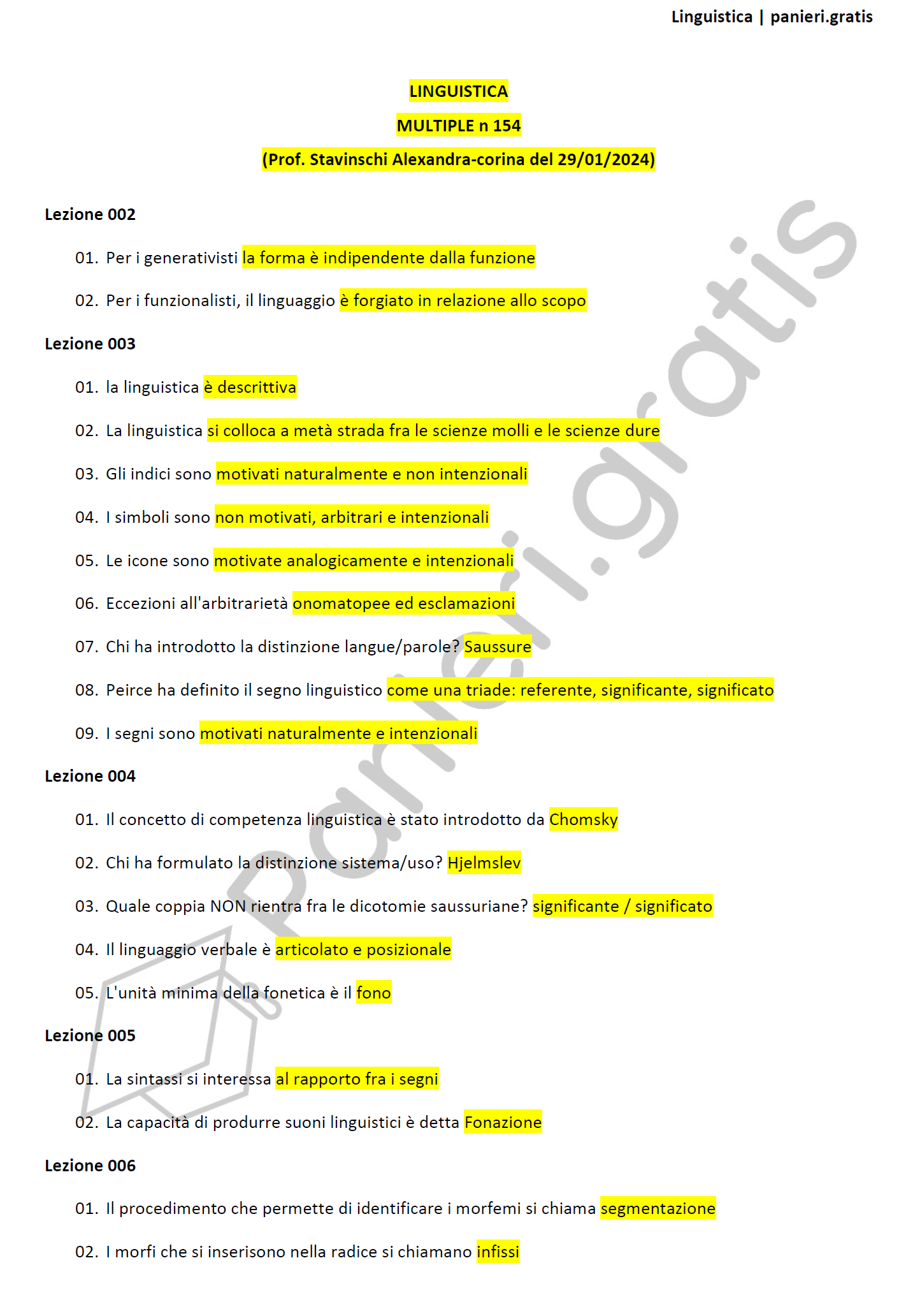 Paniere di Linguistica - MULTIPLE - in ordine di lezione per il CdS in Scienze del turismo, Prof. Stavinschi Alexandra-corina del 29/01/2024Informazioni Aggiuntive
