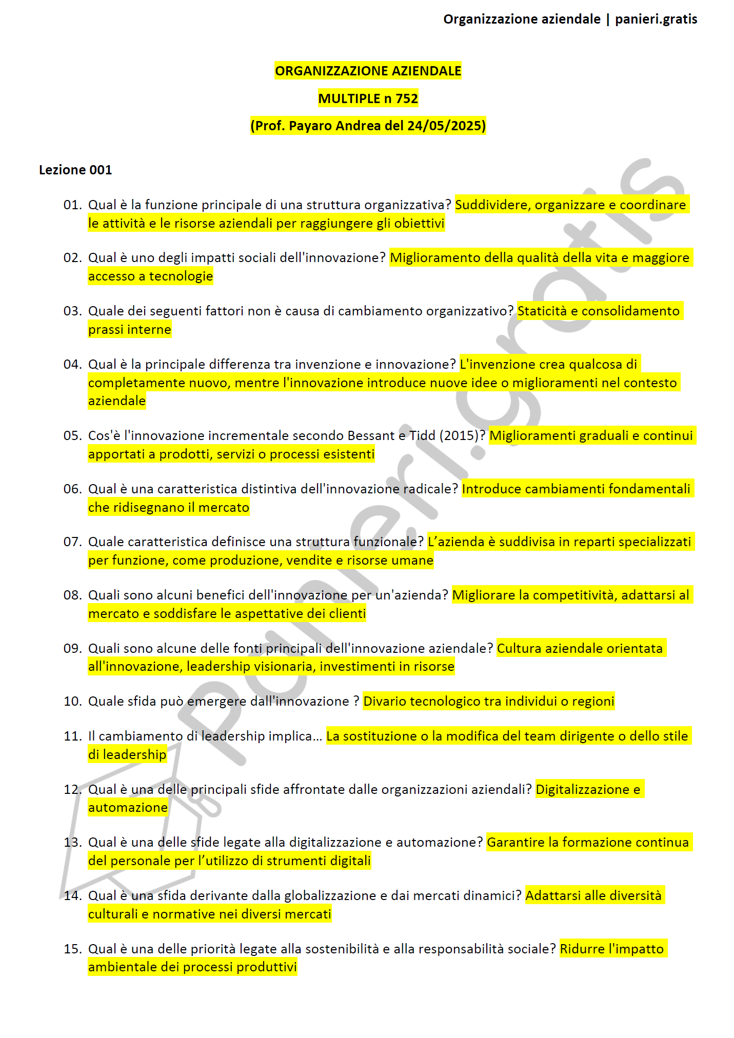 Paniere di Organizzazione aziendale - MULTIPLE - in ordine di lezione per il CdS in Economia, Prof. Payaro Andrea del 24/05/2025Informazioni Aggiuntive