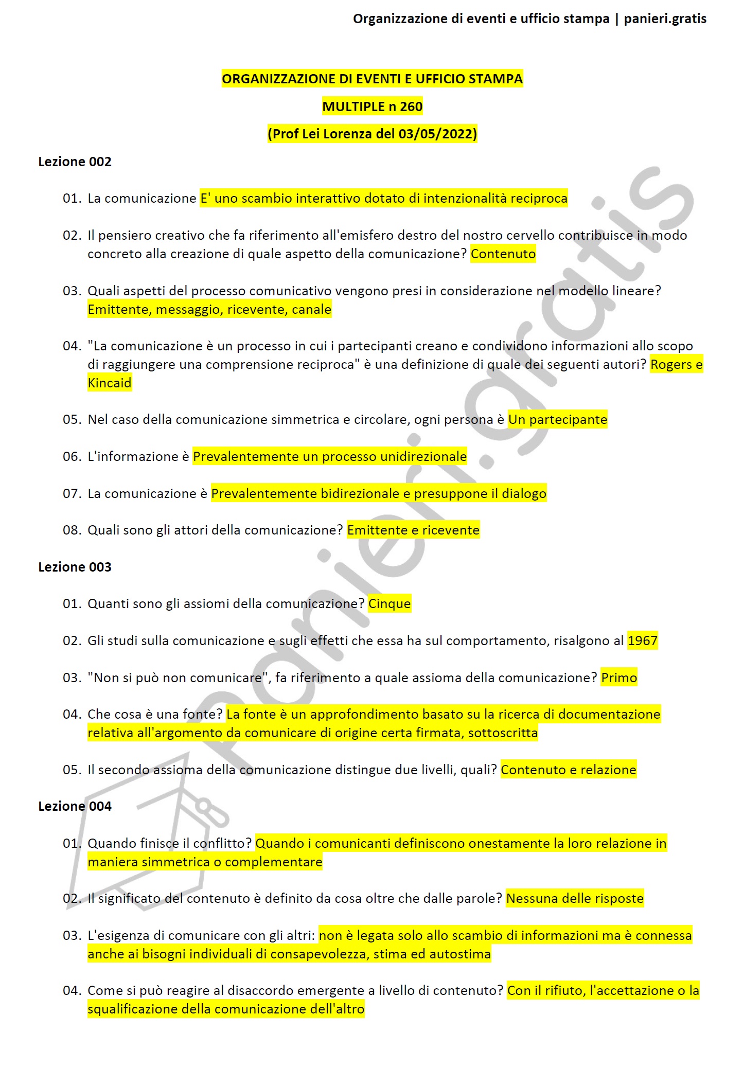 Paniere di Organizzazione di eventi e ufficio stampa - MULTIPLE - in ordine di lezione per il CdS in Scienze del turismo per il management e i beni culturali, Prof. Lei Lorenza del 03/05/2022 - eCampusInformazioni Aggiuntive