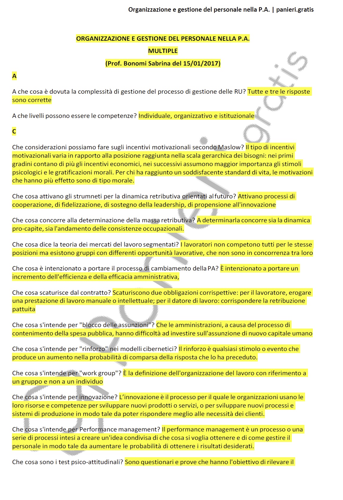 Paniere di Organizzazione e gestione del personale nella P.A. - MULTIPLE - in ordine alfabetico per il CdS in SCIENZE POLITICHE E SOCIALI, Prof. Bonomi Sabrina del 15/01/201Informazioni Aggiuntive