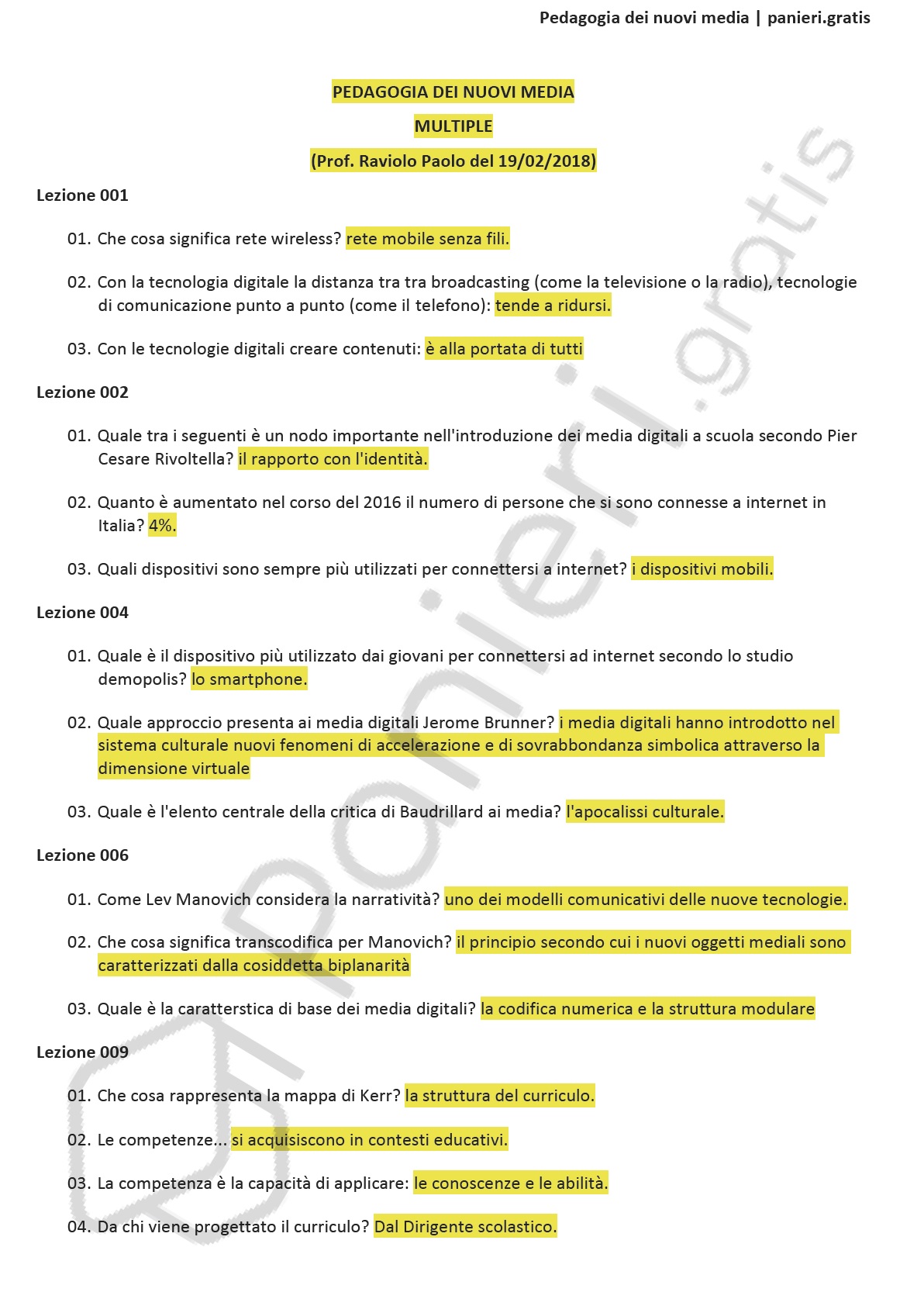 Paniere di Pedagogia dei nuovi media - MULTIPLE - in ordine di lezione per il CdS di Scienze dell'educazione e della formazione primaria e MASTER A SCUOLA OGGI, Prof. Raviolo Paolo del 19/02/2018Descrizione