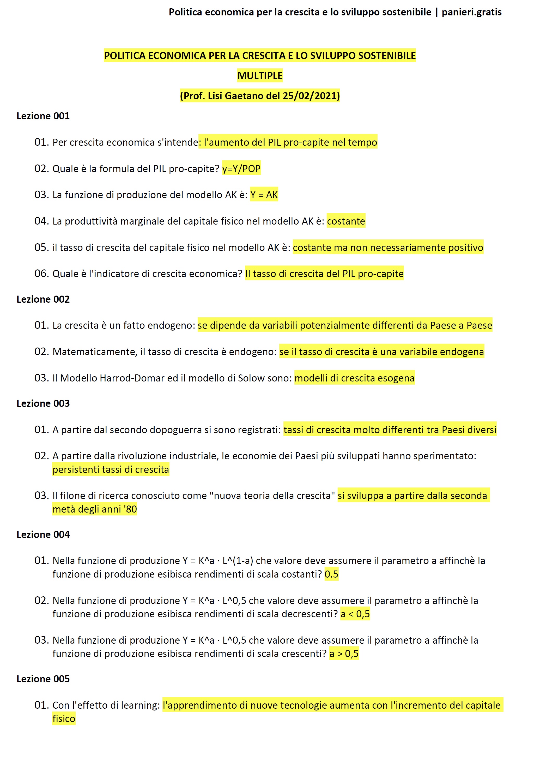 Paniere di Politica economica per la crescita e lo sviluppo sostenibile - MULTIPLE - in ordine di lezione per il CdS in Scienze dell'economia (Green Economy), Prof. Lisi Gaetano del 25/02/2021Descrizione
