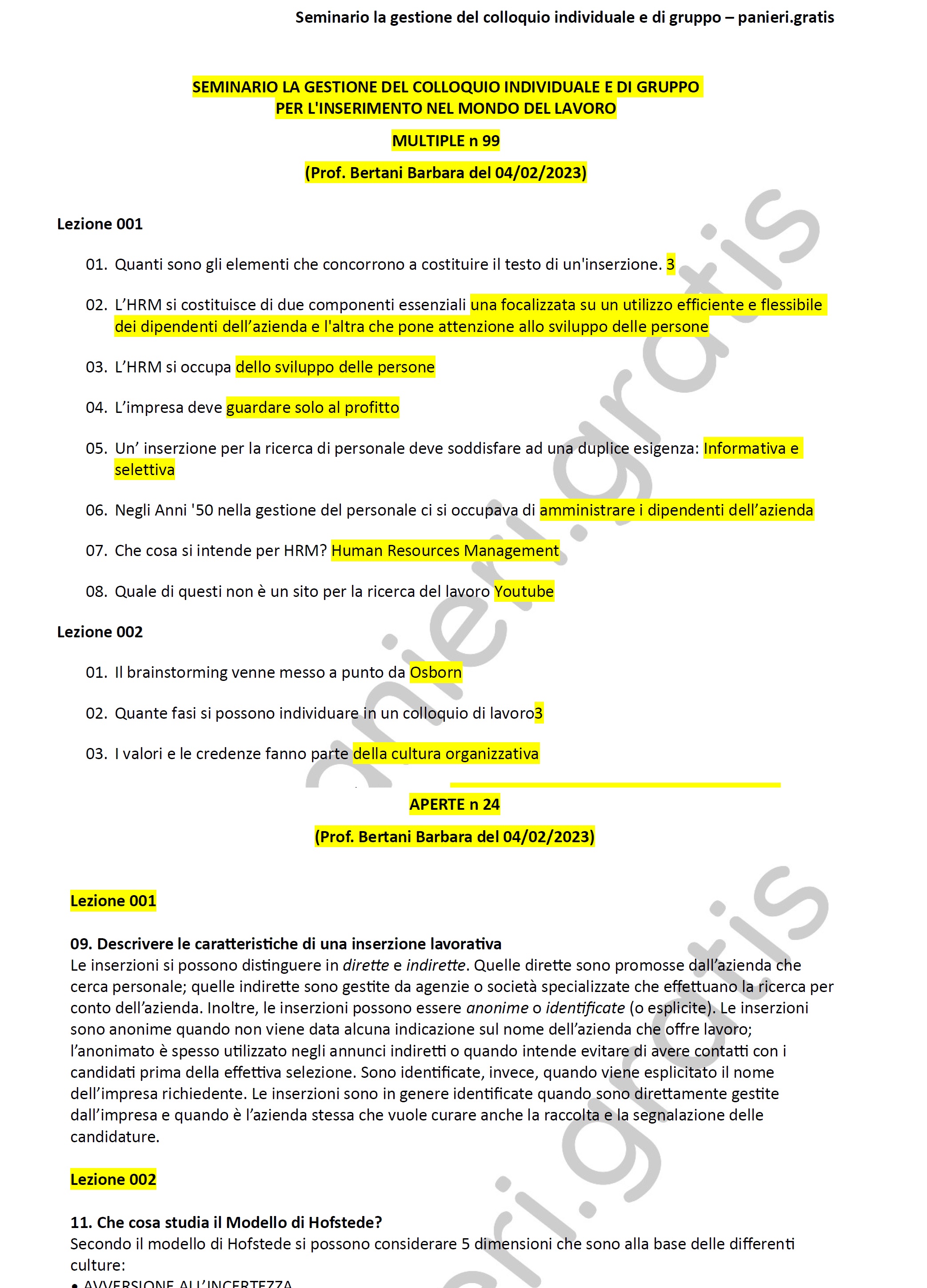 Paniere di Seminario: la gestione del colloquio individuale e di gruppo per l'inserimento nel mondo del lavoro - COMPLETO (Aperte e Multiple) - in ordine di lezione per il CdS in Economia, della Prof.ssa Bertani Barbara del 04/02/2023 - eCampusInformazioni Aggiuntive