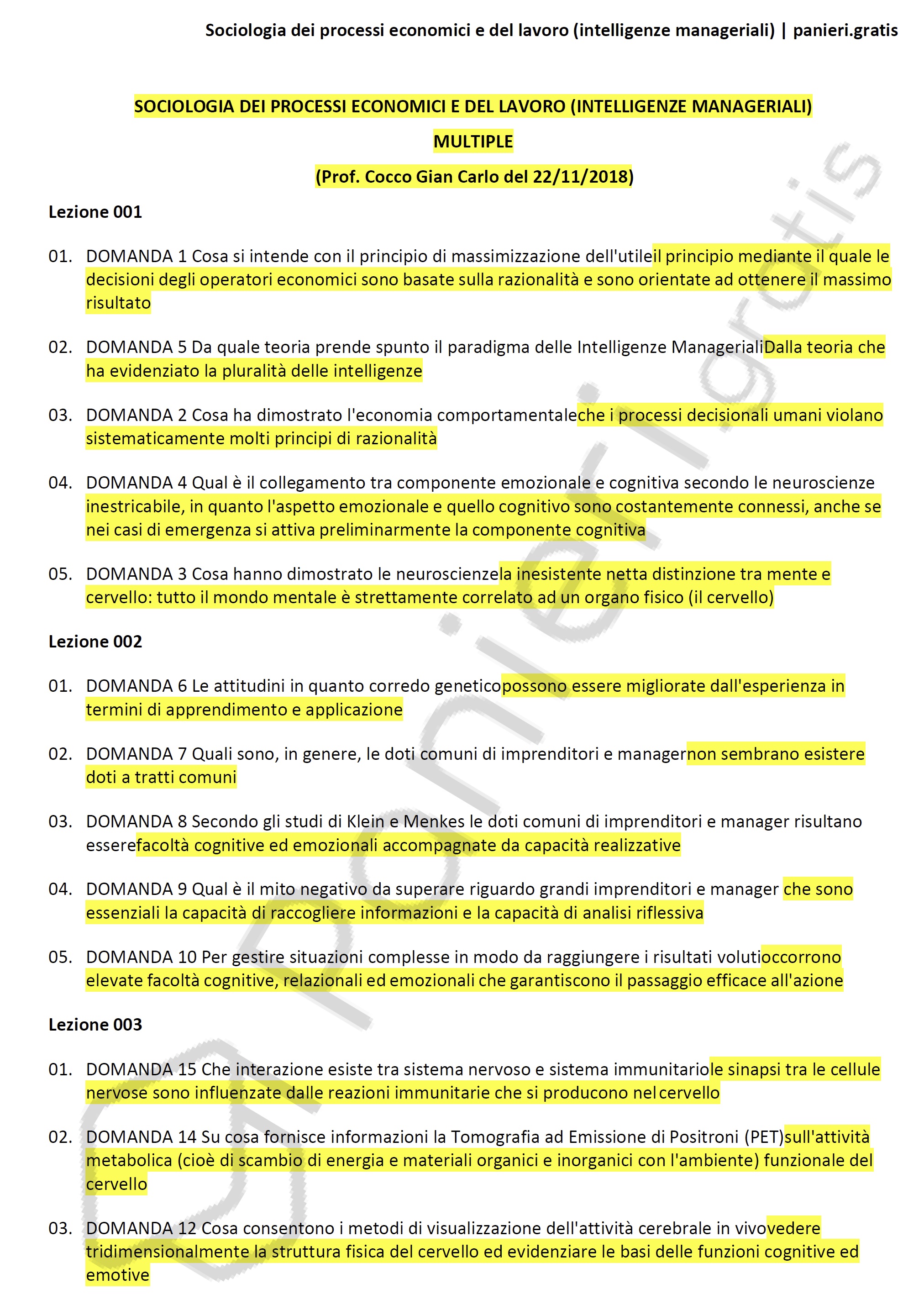 Paniere di Sociologia dei processi economici e del lavoro (intelligenze manageriali) - Multiple
