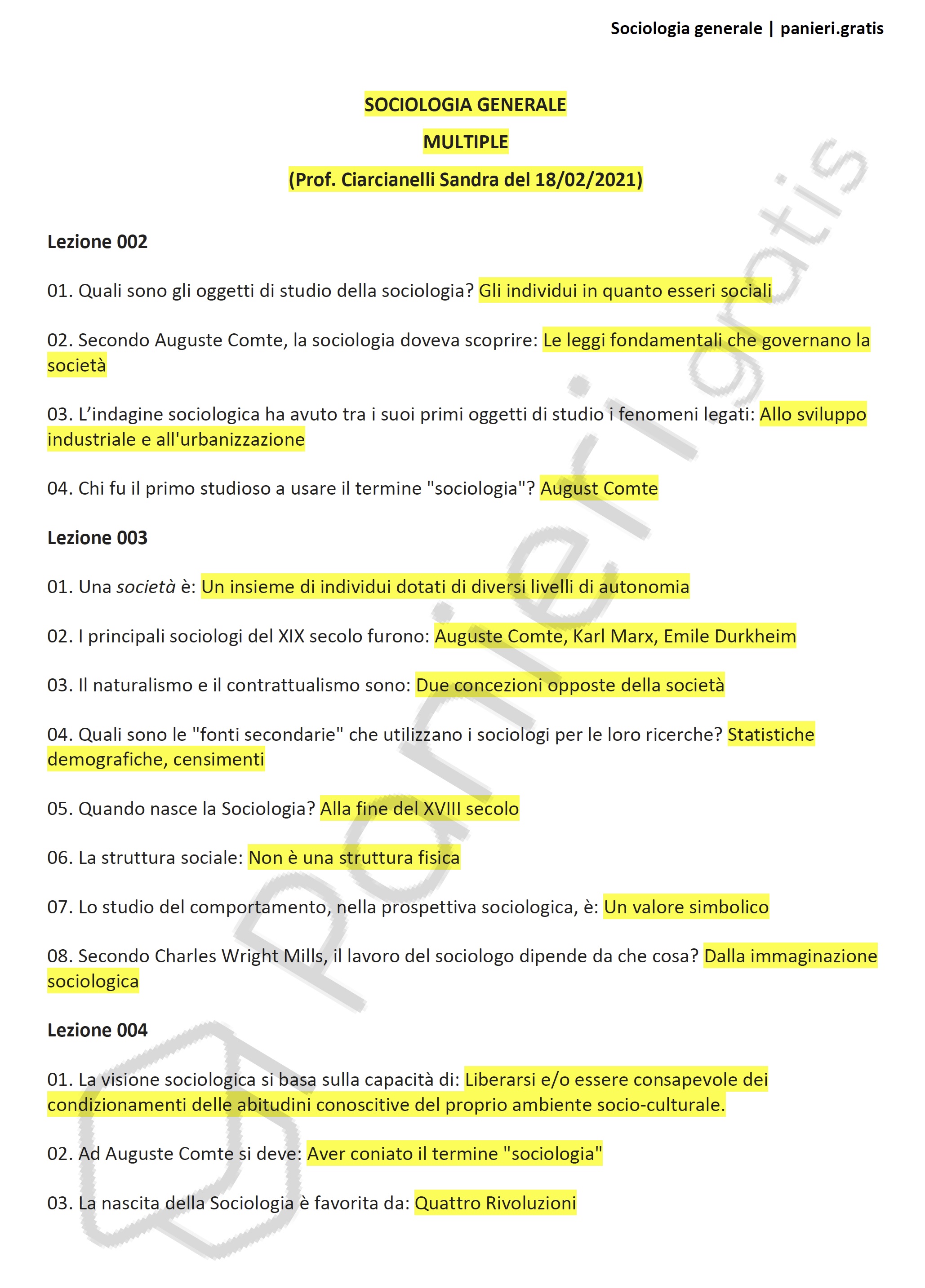 Paniere di Sociologia generale - MULTIPLE - in ordine di lezione per il Master: L'INSEGNAMENTO DELLE MATERIE FILOSOFICHE E UMANISTICHE NEGLI ISTITUTI SECONDARI DI II GRADO: METODOLOGIE DIDATTICHE, Prof. Ciarcianelli Sandra del 18/02/2021Descrizione