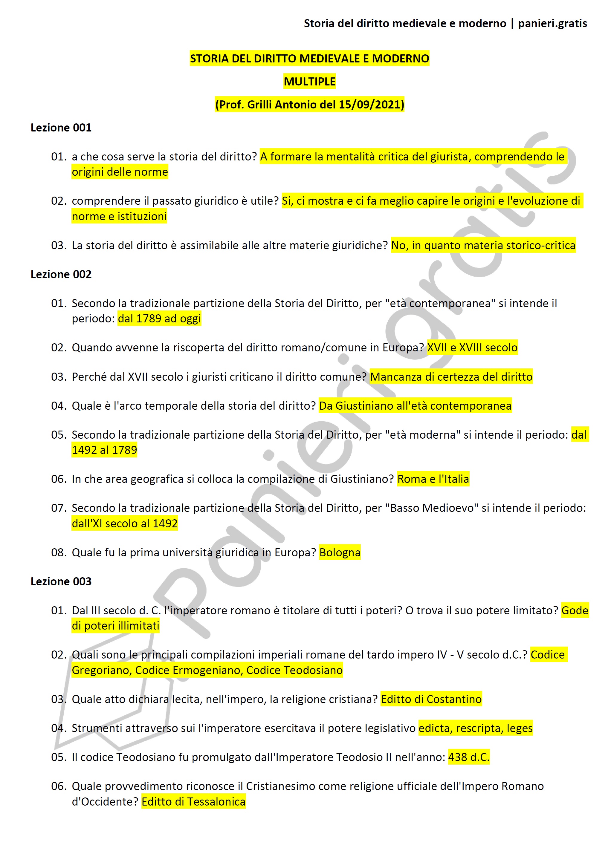 Paniere di Storia del diritto medievale e moderno - MULTIPLE - in ordine di lezione e alfabetico per il CdS in Giurisprudenza, Prof. Grilli Antonio del 15/09/2021Informazioni Aggiuntive