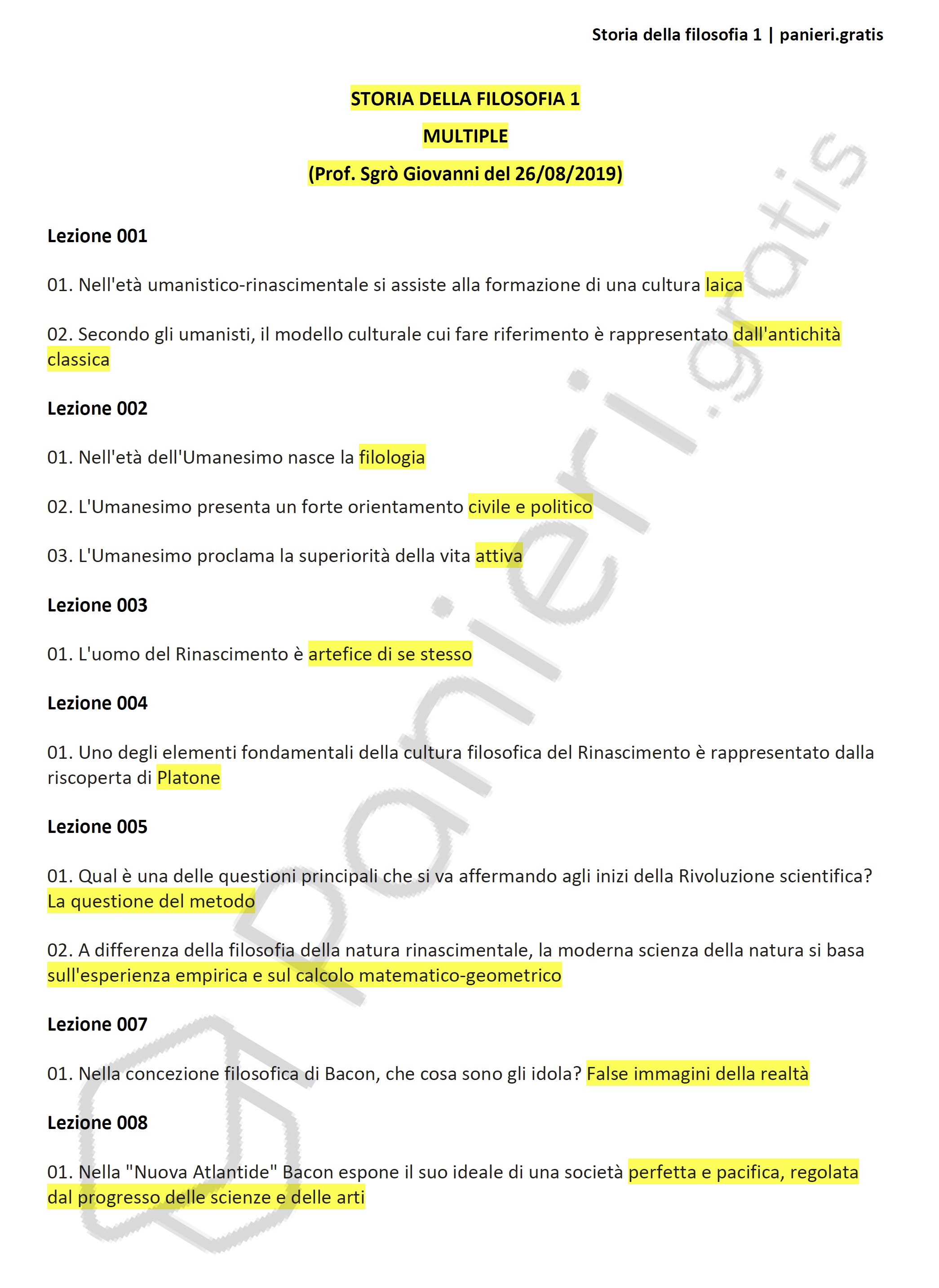 Paniere di Storia della filosofia 1 - Multiple- Master - eCampus