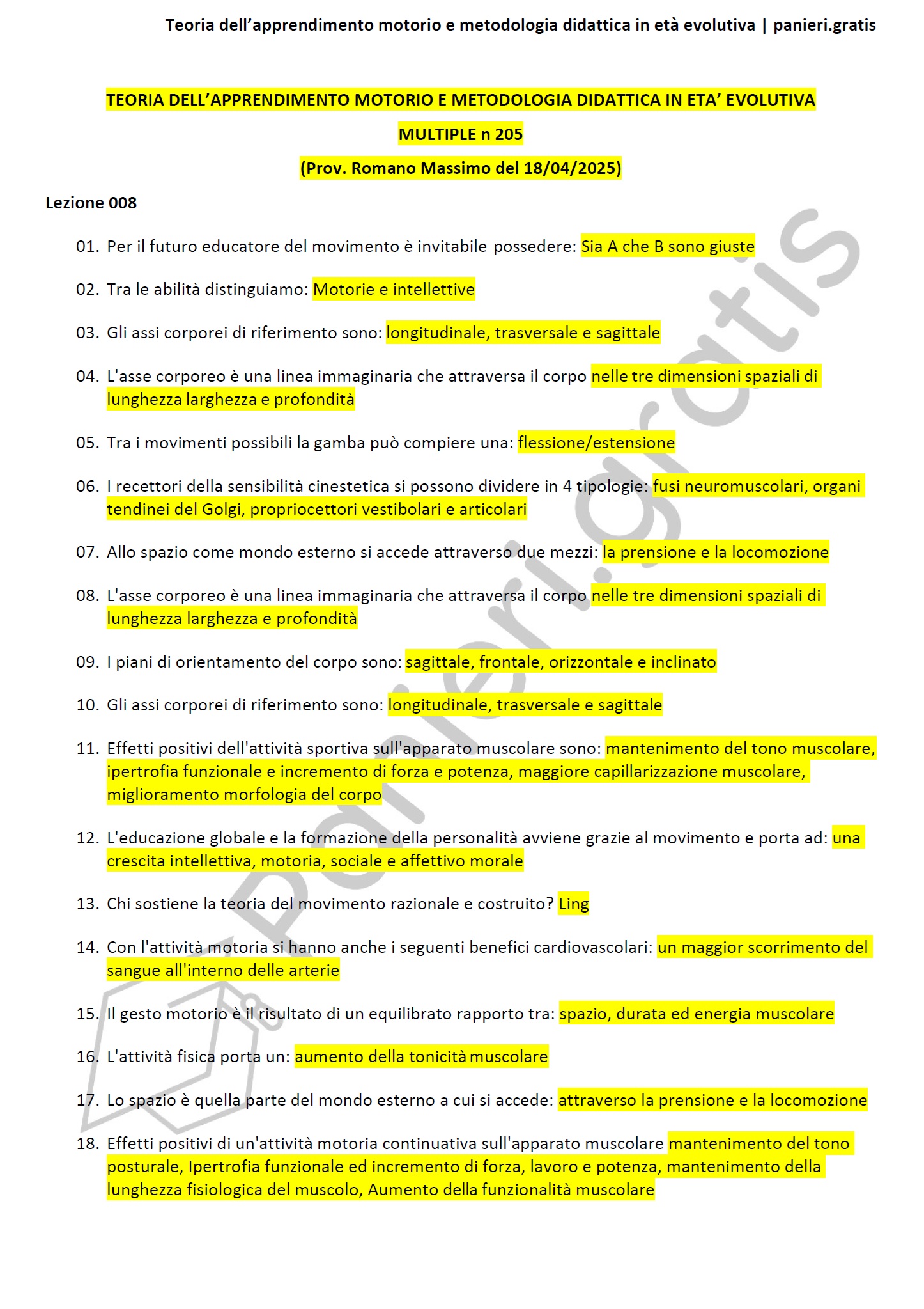 Paniere di Teoria dell’apprendimento motorio e metodologia didattica evolutiva - MULTIPLE - in ordine di lezione per il CdS in SCIENZE DELLE ATTIVITA' MOTORIE E SPORTIVE, Prof. Romano Massimo del 18/04/2025Descrizione