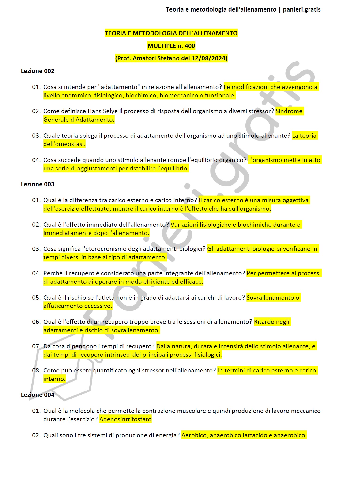 Paniere di Teoria e metodologia dell'allenamento - MULTIPLE - in ordine di lezione per il CdS in Scienze delle attività motorie e sportiva, Prof. Amatori Stefano del 12/08/2024 - eCampusInformazioni Aggiuntive