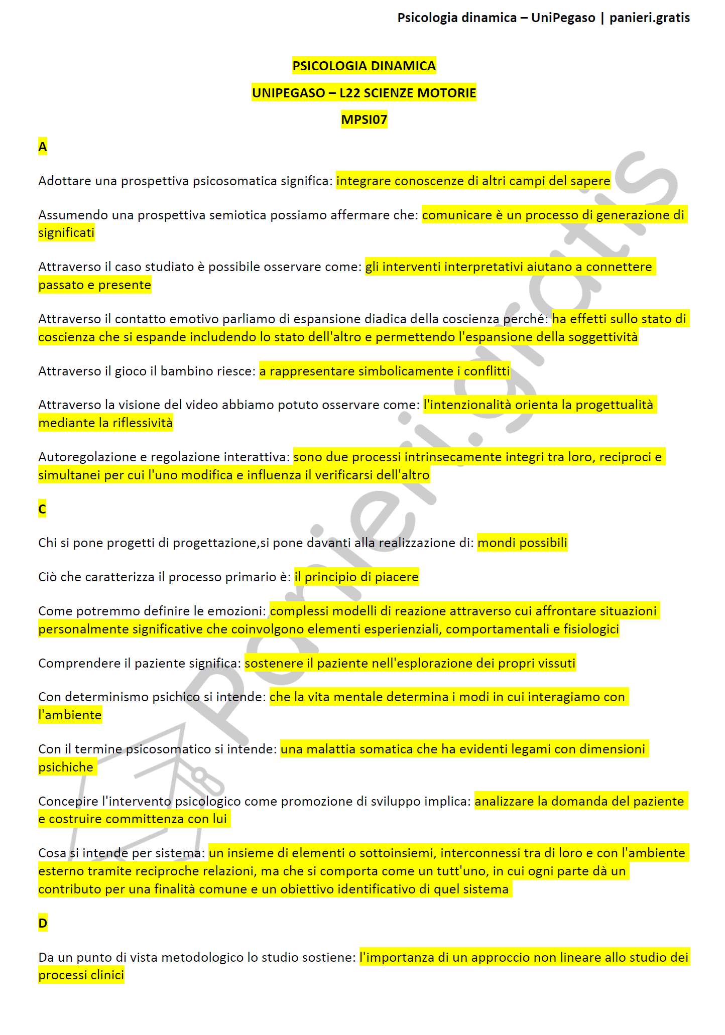 Paniere di Psicologia dinamica (MPSI07), in ordine alfabetico per il CdS in L22 Scienze motorie - UniPegasoInformazioni Aggiuntive