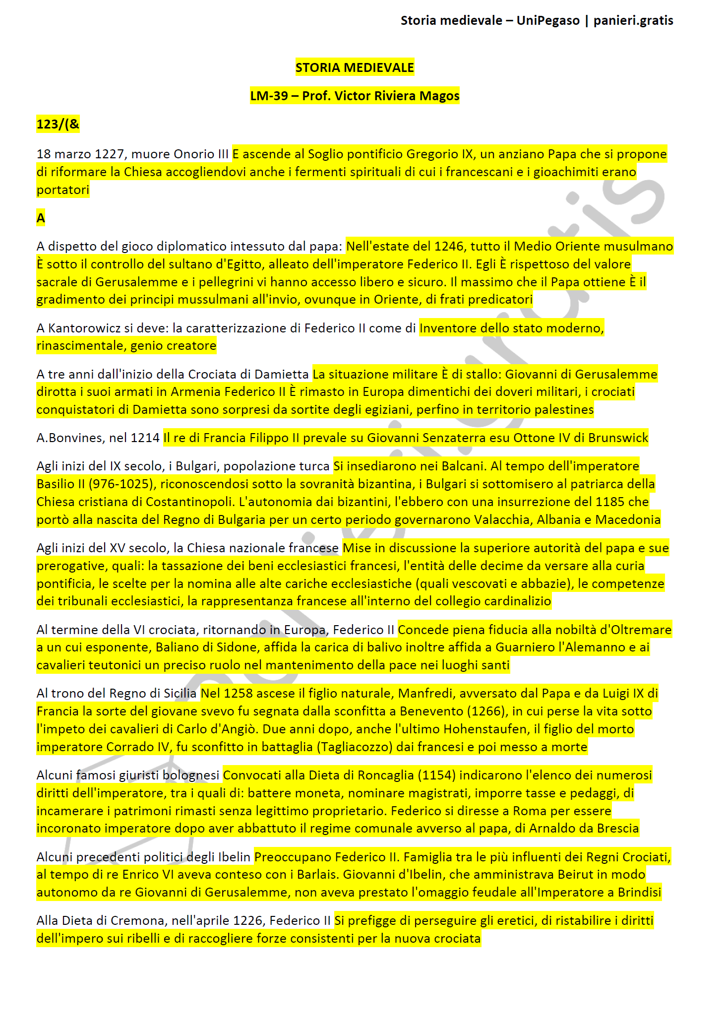 Paniere Storia medievale, in ordine alfabetico per il CdS LM39 Linguistica moderna, Prof. Victor Riviera Magos - UniPegasoInformazioni Aggiuntive